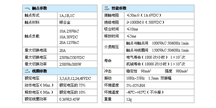 觸點容量:20A 125VAC,10A 250VAC/30VDC